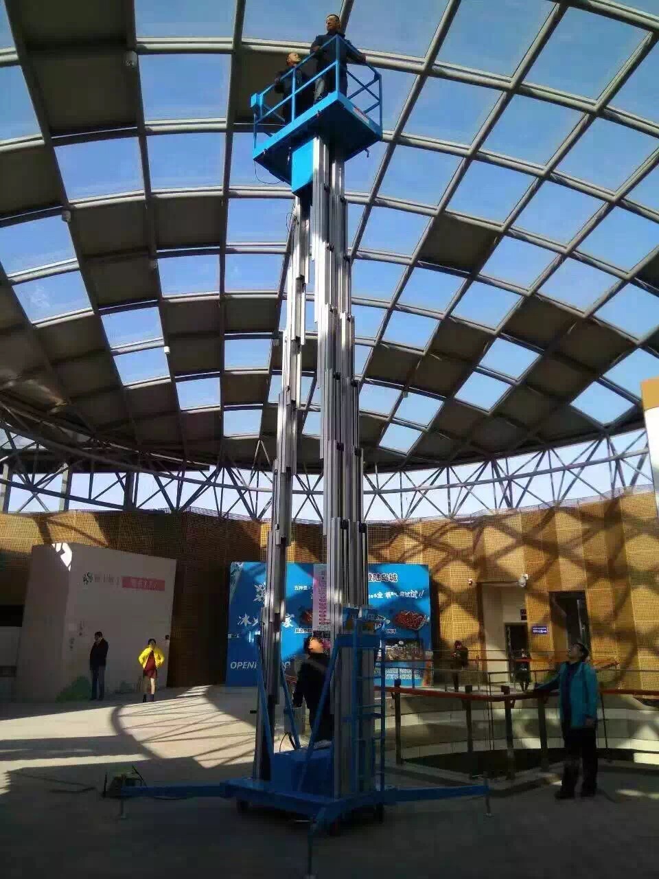 雙立柱鋁合金升降機:全新設計的新一代產品,整體采用高強度鋁型材精制而成由于型材強度高,使升降臺的偏轉與擺動極小。采用雙桅柱式結構,載重量大,平臺面積大,穩(wěn)定性極好,運轉靈活,推行方便。它輕盈的外觀,能在極小的空間內發(fā)揮最高的舉升能力。該升降機廣泛用于廠房、賓館、大廈、商場、車站、機場、體育場等。可用作電力線路、照明電器、高架管道等安裝維護,高空清潔等單人工作的高空作業(yè)。