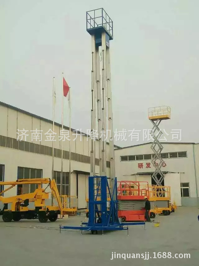 四立柱鋁合金升降機:整體采用高強度鋁型材精制而成由于型材強度高,采用四桅柱式結構,穩(wěn)定性極好,運轉靈活,載重量大,平臺面積大,推行方便。它輕盈的外觀,能在極小的空間內發(fā)揮最高的舉升能力。使升降臺的偏轉與擺動極小。